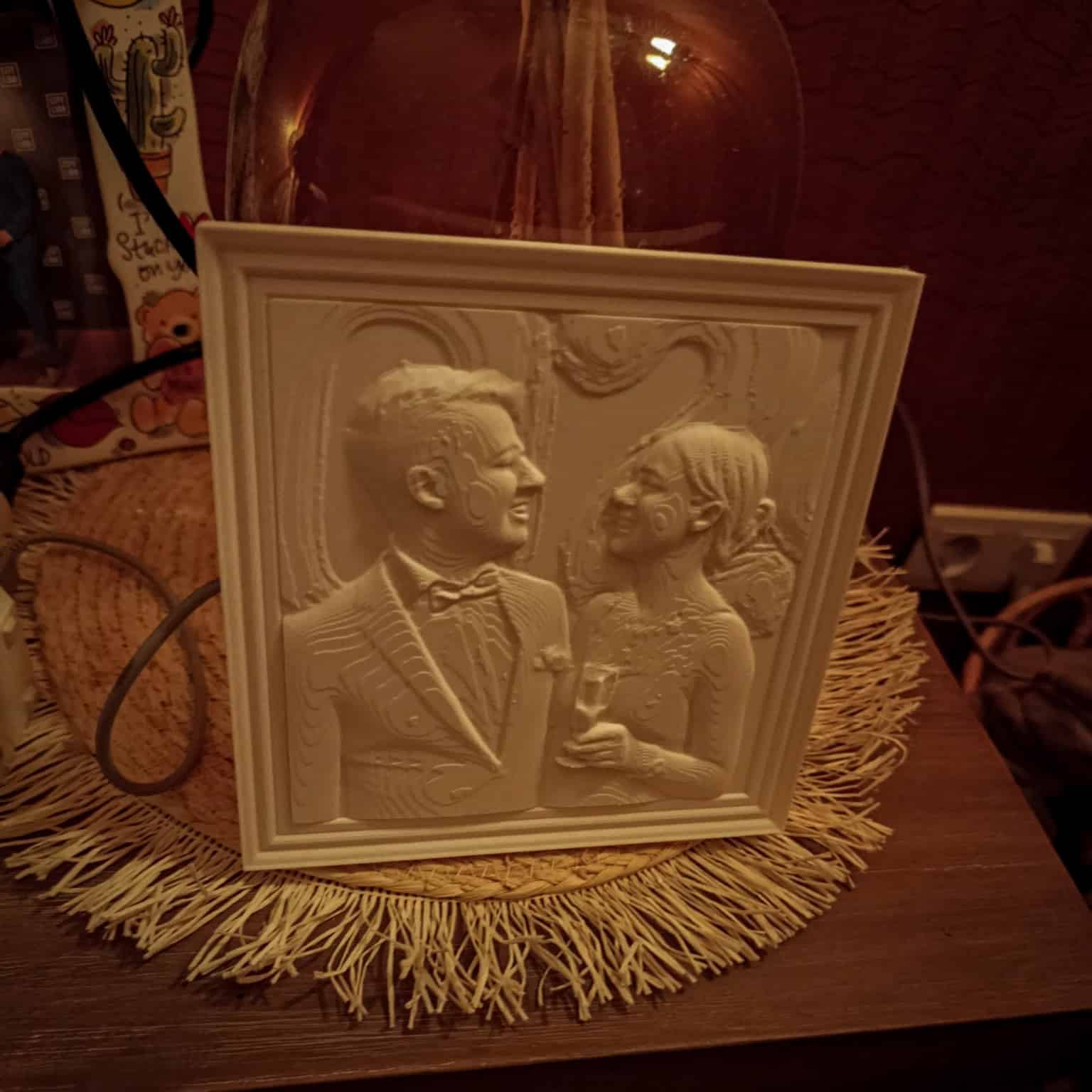 Sommige herinneringen verdienen iets speciaals. Met een 3D-foto verander je een gewone foto in een tastbaar kunstwerk waarin licht en schaduw jouw moment echt tot leven brengen. Het reliëf zorgt voor een warme, persoonlijke uitstraling – precies zoals in het voorbeeld.