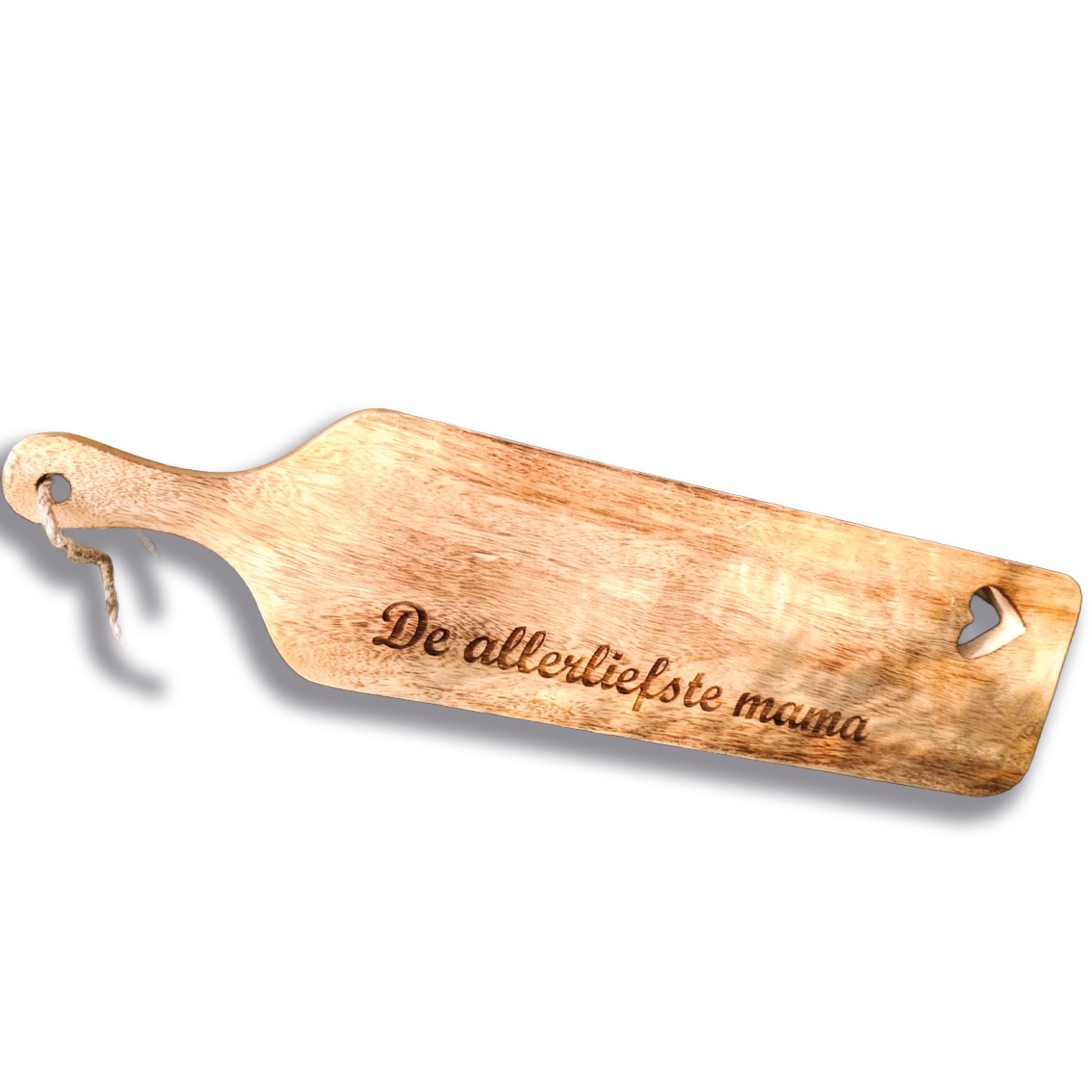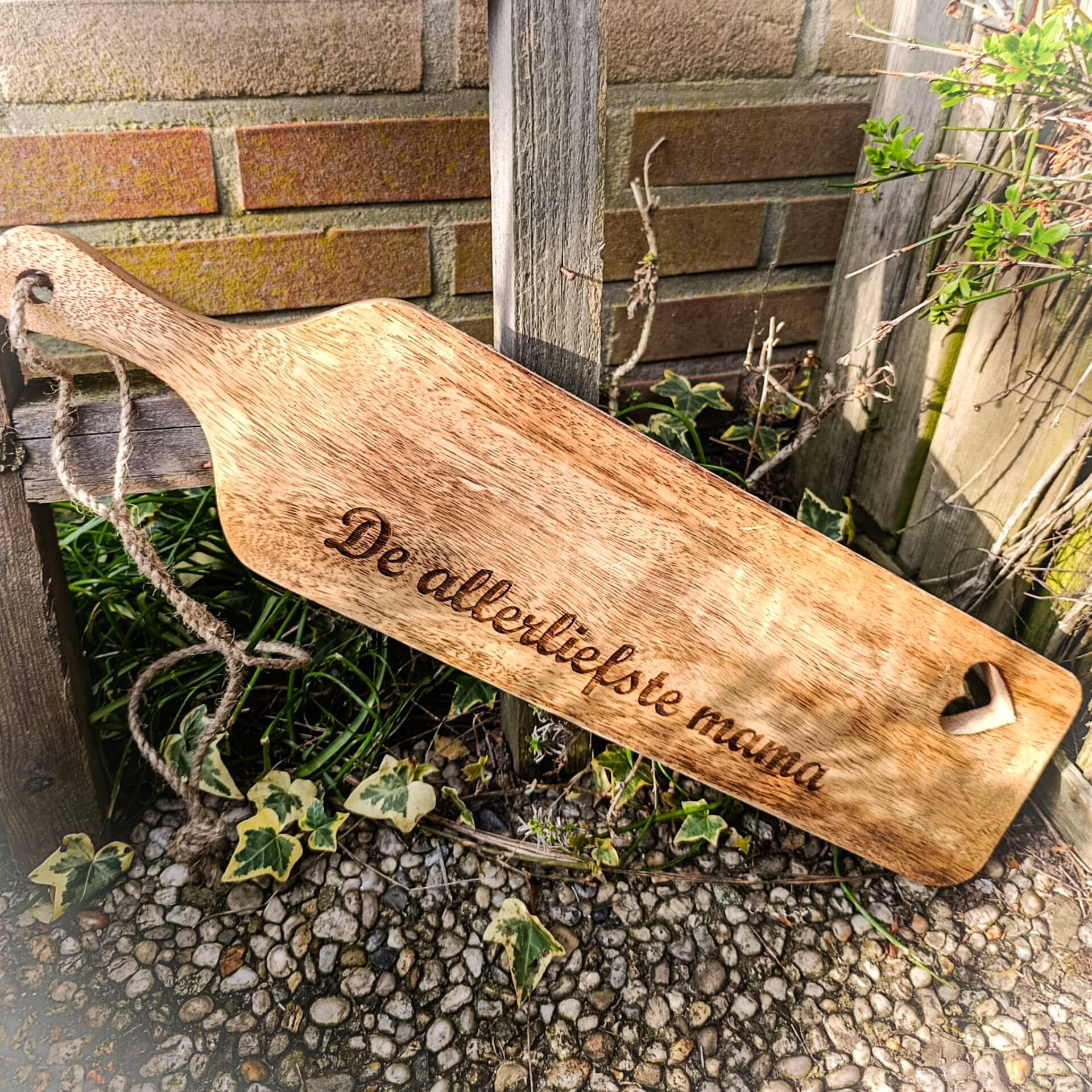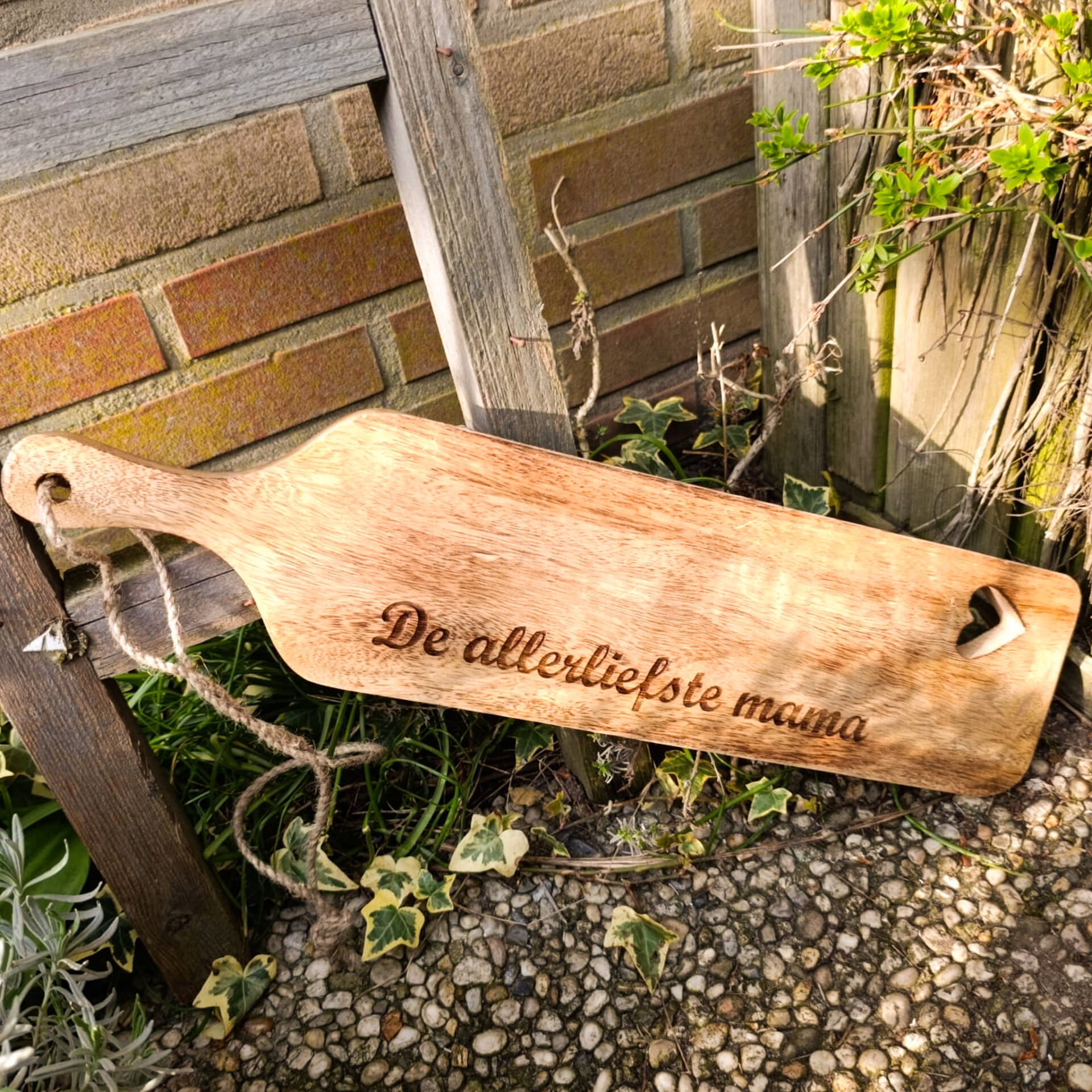 Wat deze plank echt speciaal maakt, is dat je hem volledig persoonlijk kunt maken. Met een gegraveerde tekst geef je niet zomaar een cadeau, maar een verhaal. Veel mensen kiezen voor een korte, liefdevolle boodschap voor hun moeder, maar je kunt natuurlijk ook een grappige tekst, een quote of de namen van de kinderen laten graveren. Daardoor wordt elke plank uniek en speciaal gemaakt voor degene die hem ontvangt.