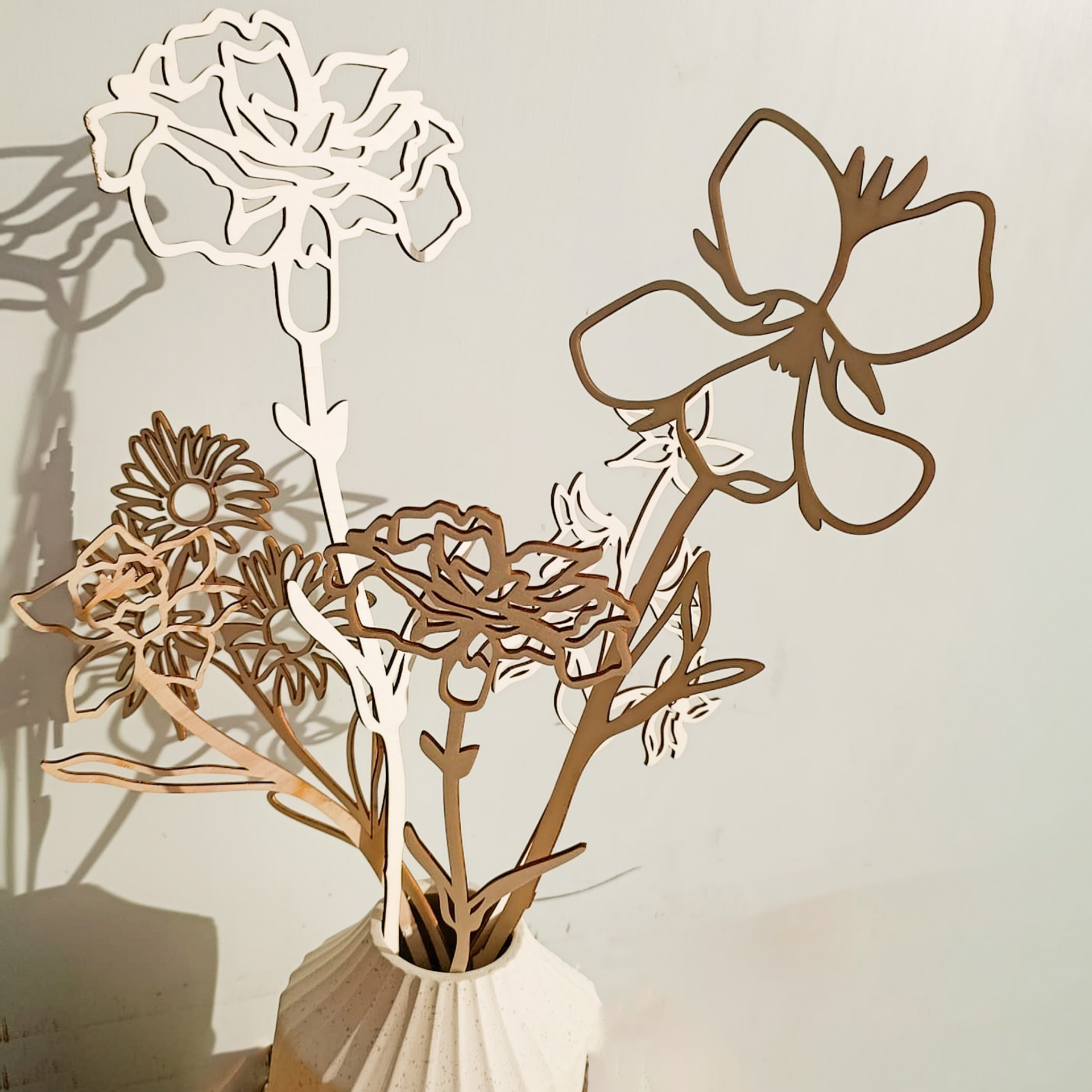 Je kunt zelf kiezen welke bloem het beste past bij de ontvanger of het moment. Van een liefdevolle bloem voor Valentijn tot een zachte, tijdloze bloem als geboortecadeau. Iedere houten bloem heeft zijn eigen karakter en uitstraling.