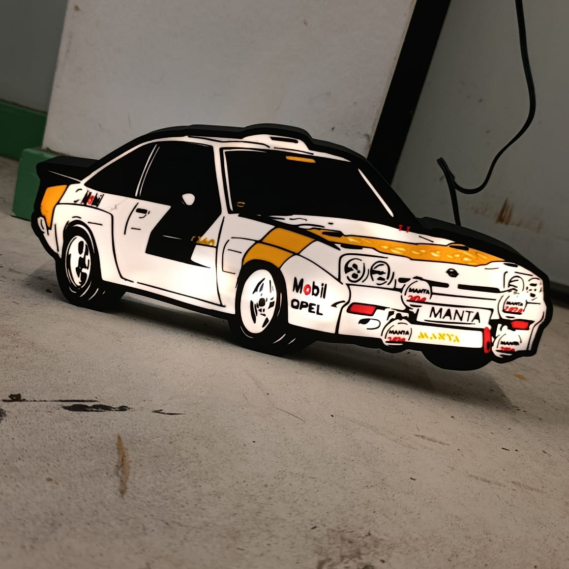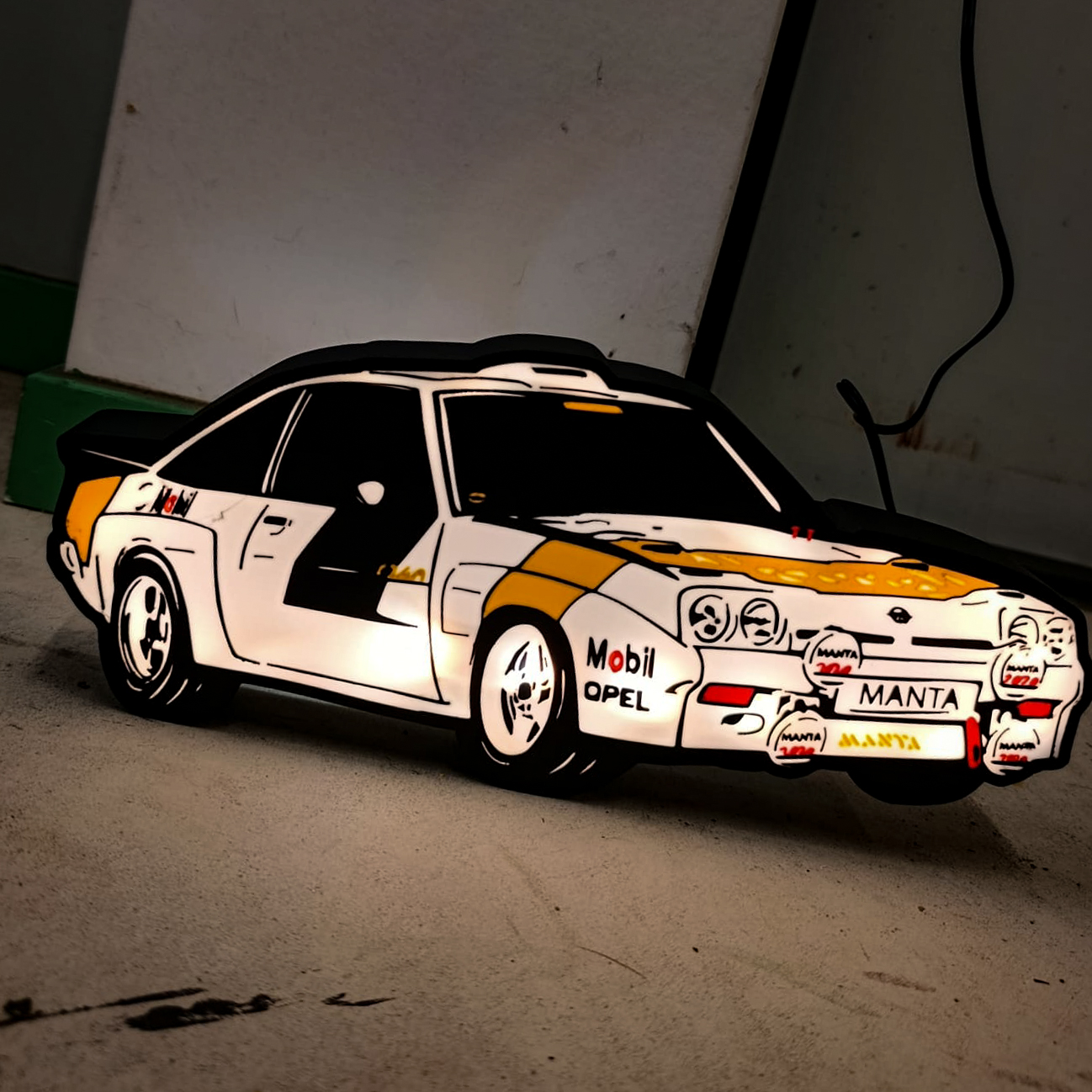 Laat jouw auto letterlijk stralen met een gepersonaliseerde lamp, speciaal op maat gemaakt. Elke lamp wordt met de hand getekend, met oog voor elk detail van jouw voertuig – of het nu een klassieke Opel Manta, een moderne sportwagen of je trots van het dagelijks verkeer is.